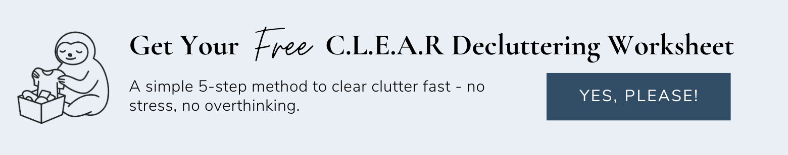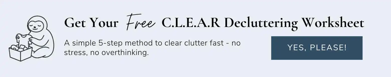 - Grab your free C.L.E.A.R. Worksheet—a one-page printable that walks you through the Choose, Label, Eliminate, Assign, Repeat process. It’s the perfect low-pressure way to declutter your life, starting with the hotspots that actually matter.